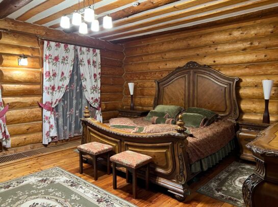 Спальня 2 на 3 поверсі: вклике двоспальне ліжко, шафа для одягу, комод, телевізор; санвузол (ванна-джакузі, туалет, умивальник, біде), можливість доставити